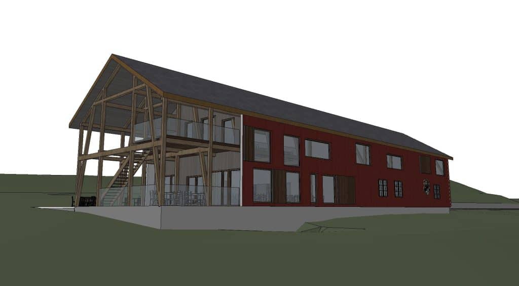 Nå planlegger Norsjø Golfklubb for at gjester som kommer langveisfra også skal ha et alternativ om du ikke disponerer bobil eller kjenner noen du kan overnatte hos i området. Tegningene av nytt klubbhus er signert Sør-Arkitekter, og ifølge Ragnar skal man kunne nyte utsikten til Norsjø og se «hele 70% av banen» fra den nye verandaen utenfor. I tillegg til flott utsikt inkluderer tegningene nytt klubbhus med anretningskjøkken, toaletter, garderober, lagerplasser, og et stort oppholdsrom med mulighet for å leie ut til arrangementer for opptil 80 personer, og ikke minst fire golfsimulatorer så golf «endelig kan bli helårsidrett». Over tunet er det planlagt et vandrerhjem for golfere, med overnattingskapasitet til 12-16 gjester. Styreleder Svein Arntsen og Daglig leder Ragnar Kisfoss viser tegninger og forteller engasjerte om deres nye planer. Svein: «oppgaven vi ga til arkitektene var blant annet at vi ønsket å bevare det flotte tunet her, og at du skal kunne se at det har vært en låve. Det har de levert på.»